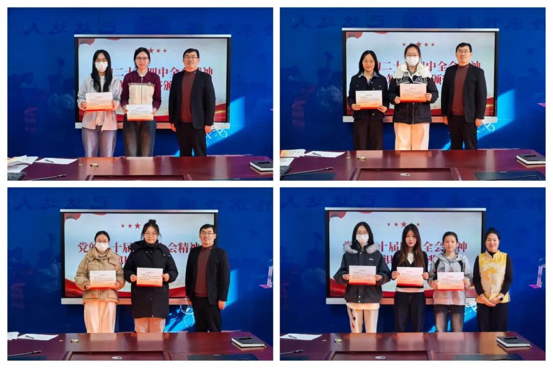 为深入学习贯彻党的二十届四中全会精神,引导广大师生将思想和行动统一到全会精神上来,近期,我院精心策划并成功举办了党建读书征文、党的二十届四中全会精神知识竞答等系列活动,并于12月8日举行颁奖仪式暨党的二十届四中全会精神专题宣讲会。学院党委书记李鲁宁出席仪式并为获奖师生颁奖,随后作全会精神专题宣讲。