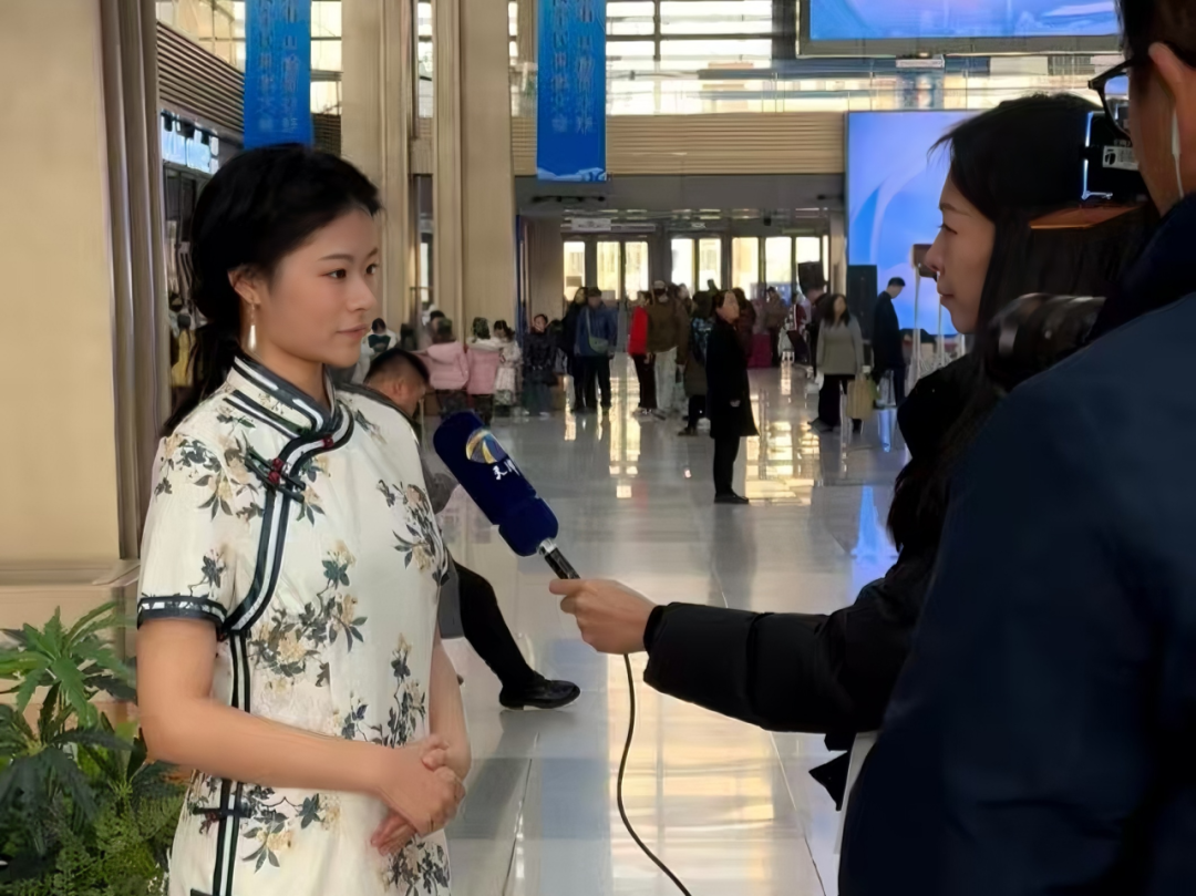 作为滨海新区年度重点文化盛事,大会涵盖名家分享、数字阅读体验、经典诵读展演等多元活动,以丰富多彩的形式推动阅读风尚浸润人心。学生们演绎的诗歌《读中国》,以25处“读中国”的递进修辞层层递进,串联起华夏文明的千年脉络与时代新声,展现了扎实的语言功底与深厚的艺术素养。崔晓娜在接受天津电视台采访时表示。朗诵加深了自己对祖国的理解和情感,也希望通过朗诵激发大家对阅读的兴趣,助力中华优秀传统文化传播。