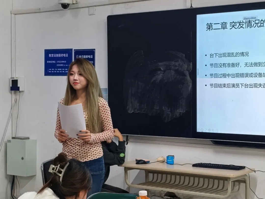 王靖淇列举了主持过程中的各种真实突发情况,比如“话筒失声”“流程错误”等,并讲解了主持不同会议的差异。在讲解与实操的互相结合下,现场观众反响积极,培训效果良好。
