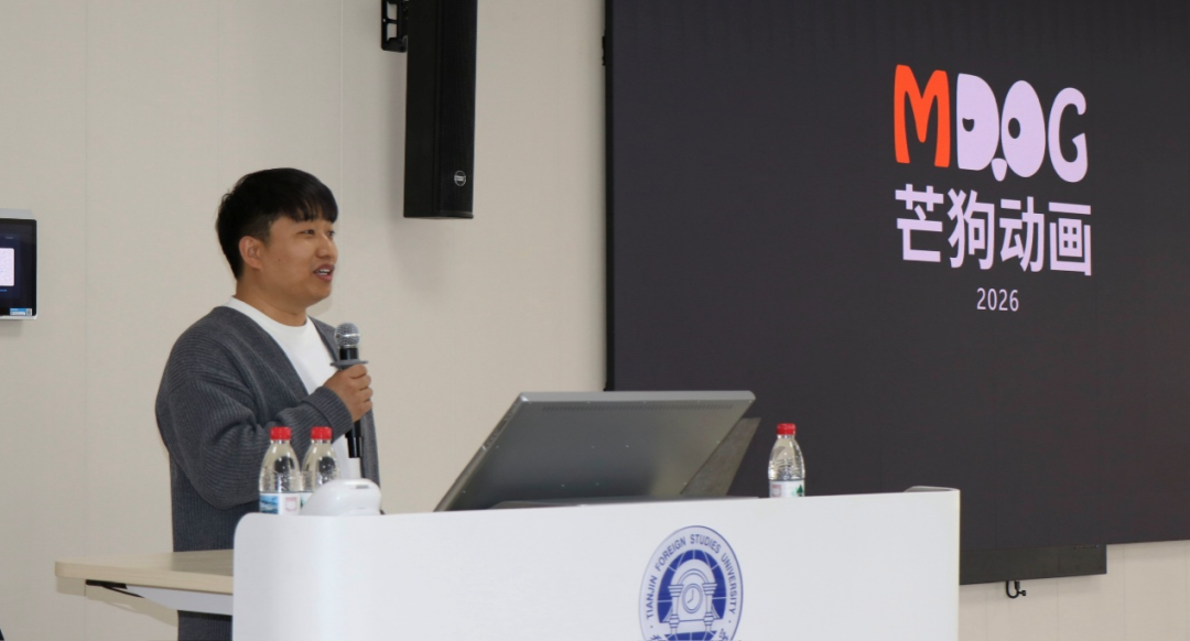 为推进 AIGC 相关专业建设、深化产教融合,全面提升学生数字素养与实践创作能力,3月19日,国际传媒学院特邀天津芒狗动画李宁、张文超两位行业导师,走进校园开展《新工具,依然匠心:AIGC 时代的创作法则》主题名师讲座。本次讲座由动画艺术系孙中玲老师主持,院长马兰州、动画艺术系全体专业教师及100余名大三本科生共同参与。