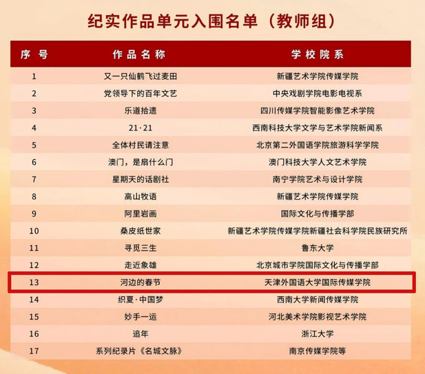 专家认为,该片在真实记录与艺术表达之间取得了良好平衡,既展现了传统节俗在当代社会的传承与发展,又通过生动的影像语言传递出中华民族重视家庭、尊崇传统的美德理念。此次获奖与展映入围,充分体现了我院师生在影视创作与文化研究领域的扎实积累与创新能力。中国高等院校影视学会作为国家一级学术组织,其年度推优活动与展映机制在高校影视领域具有重要影响力。这一荣誉的取得,不仅是对教师团队专业水准的肯定,也是学校推动学科交叉融合、服务文化建设的显著成果。我校将继续支持此类富有创新精神的创作实践,为促进中国影视教育与文化传承创新作出更大贡献。
